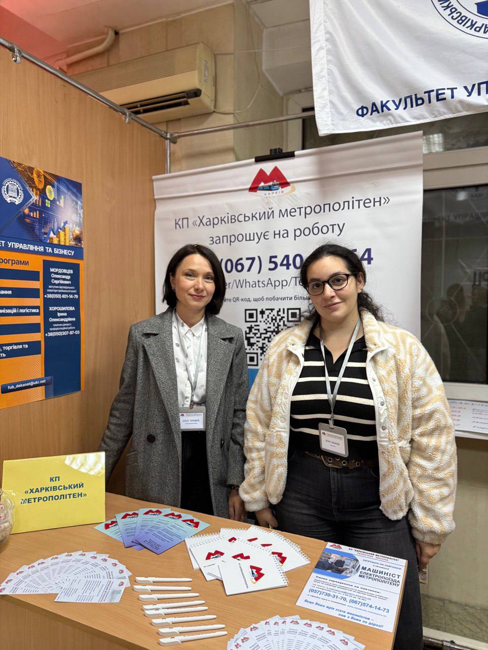 Співробітники відділу кадрів комунального підприємства «Харківський метрополітен» взяли участь в ярмарку вакансій «Карʼєрний GPS», що відбувся у Харківському національному автомобільно-дорожньому університеті.