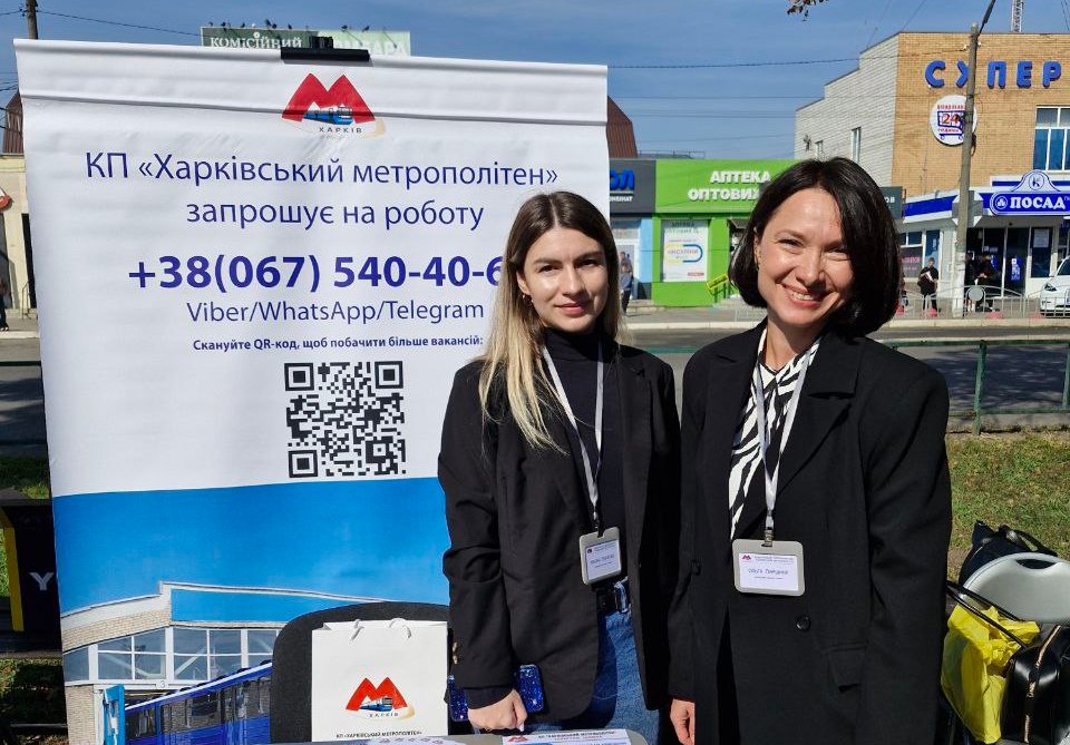 Співробітники відділу кадрів комунального підприємства «Харківський метрополітен» взяли участь у ярмарку вакансій у місті Мерефа Харківської області. У заході були представлені транспортні комунальні підприємства Харкова та комунальні підприємства Мерефи.
