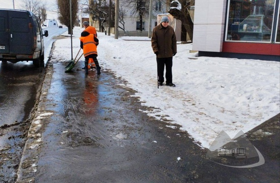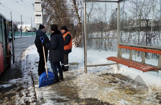 Також близько 60 працівників управління інфраструктури наземного транспорту за участі 13 одиниць спецтехніки розчищають зупинки громадського транспорту та прилеглі території в різних районах міста.