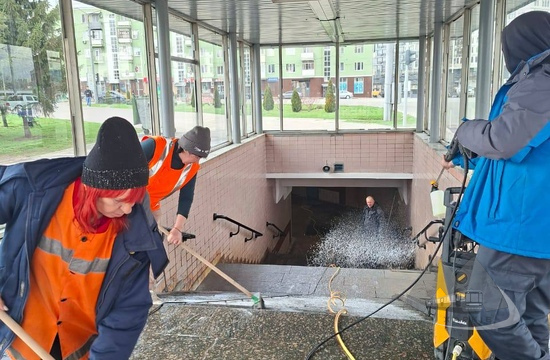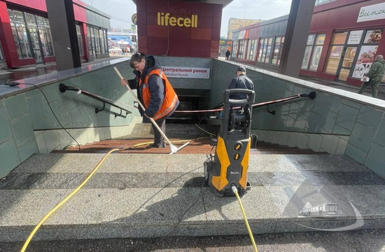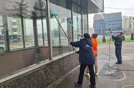 Фахівці КП «Харківський метрополітен» продовжують виконувати комплекс заходів із генерального прибирання та забезпечення належного санітарного стану у підземних переходах станцій, а також на прилеглих територіях.