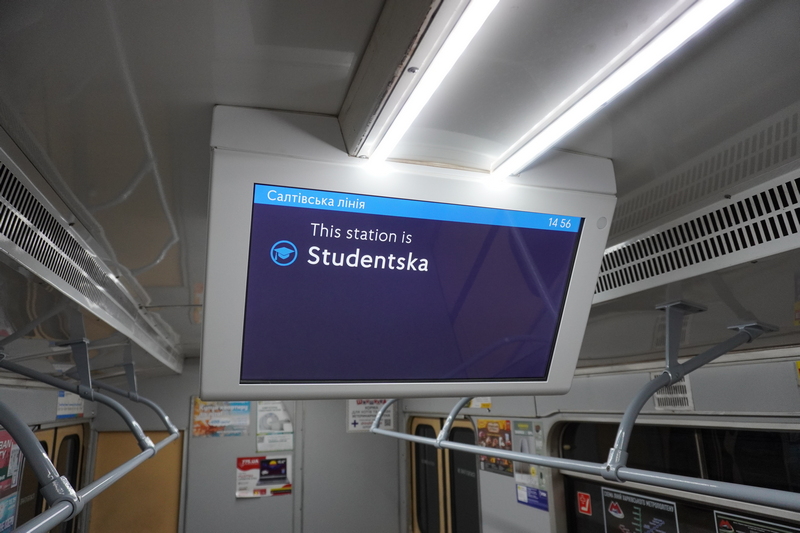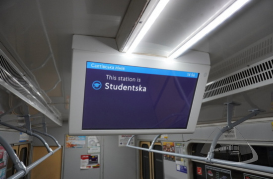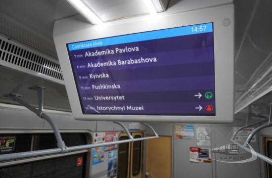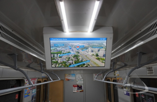 Рекламна відео-інформаційна система у вагонах окрім реклами відображає дані про станції та транспортні вузли поруч із ними.