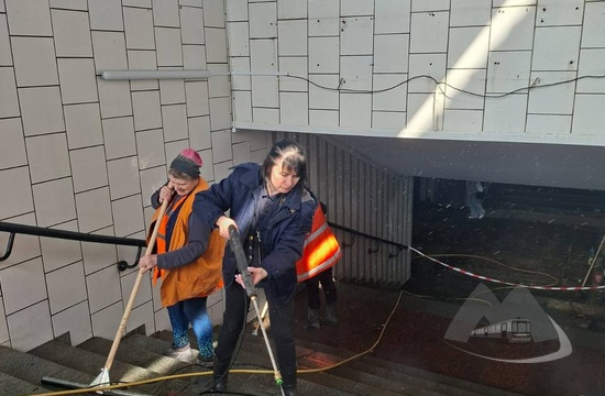 Співробітники КП «Харківський метрополітен» продовжують виконувати роботи з генерального прибирання та підтримання належного санітарного стану у підземних переходах станцій, а також на прилеглих до них територіях.
